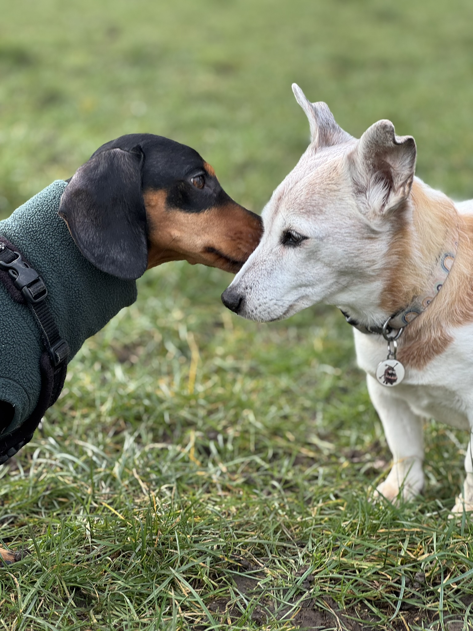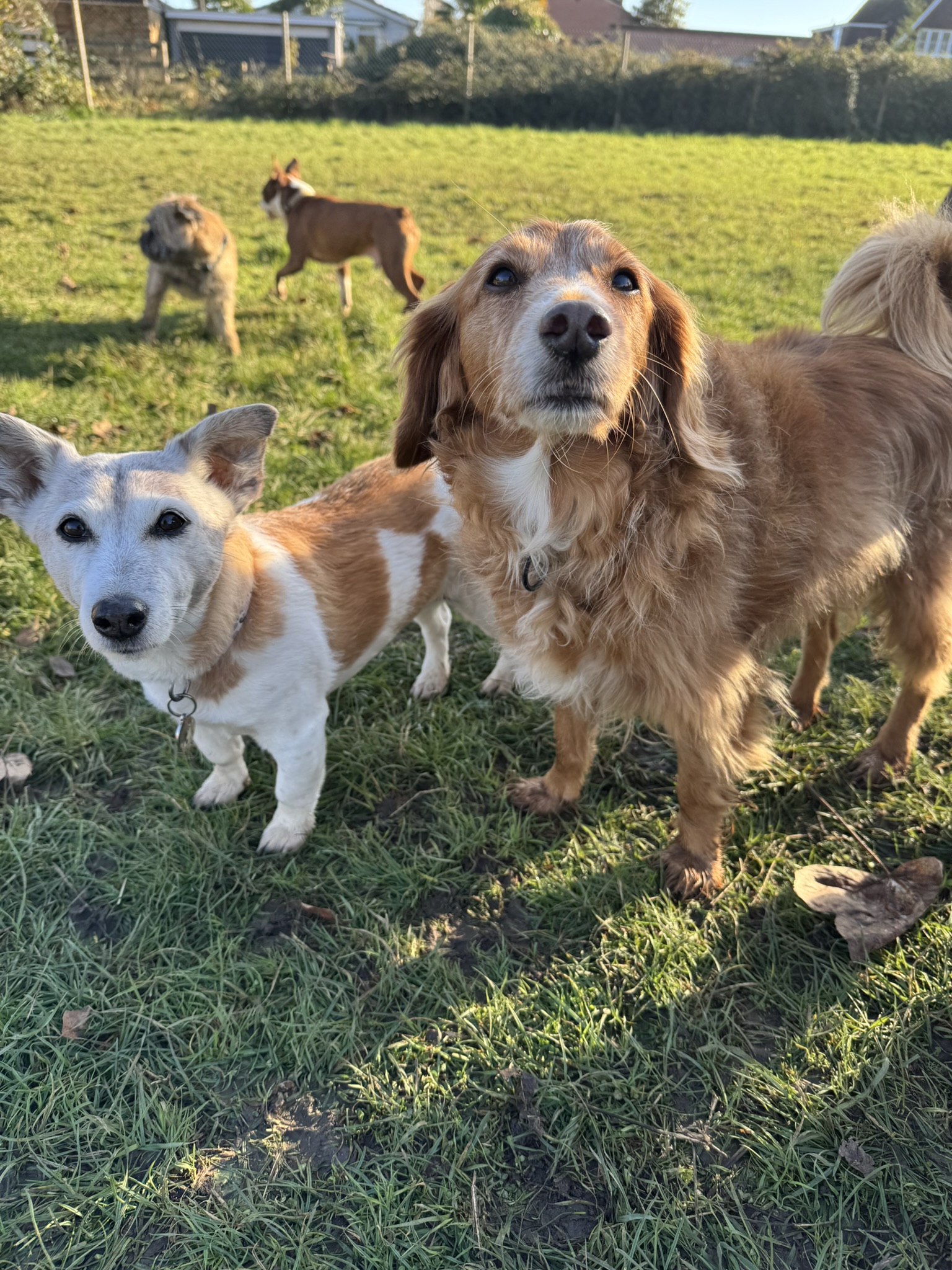 Structured small-group walks (1–4 dogs), collected by van and exercised in local parks. Each session includes at least one hour of active walking and engagement.